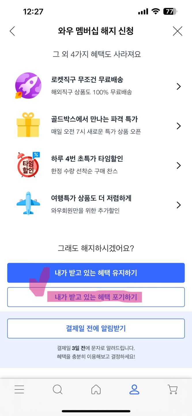 쿠팡 와우회원 해지