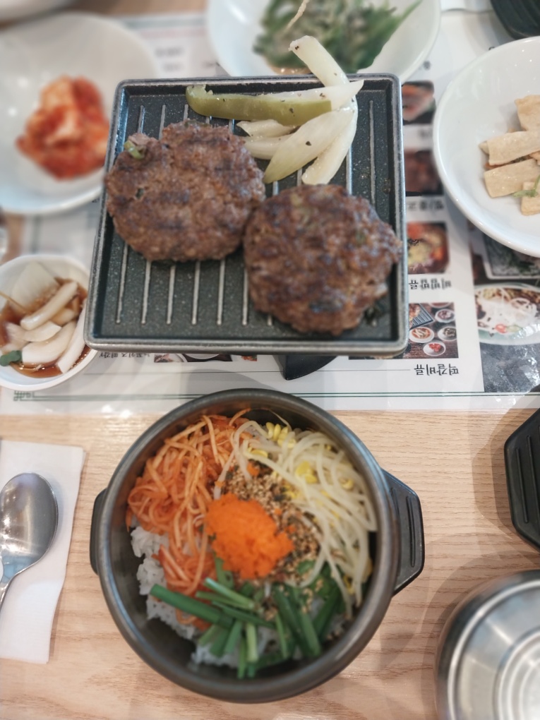 깔끔한 한식 종류의 메뉴가 많은데 저희는 눈꽃치즈 떡갈비 정식, 떡갈비 정식, 뚝배기 소 불고기, 차돌박이 된장찌개를 시켜 먹었습니다. 세팅은 철판 아래 고체연료에 불을 붙여 떡갈비를 계속 따뜻하게 먹을 수 있게 세팅이 되니 식지 않도록 맛있게 먹을 수 있었습니다.