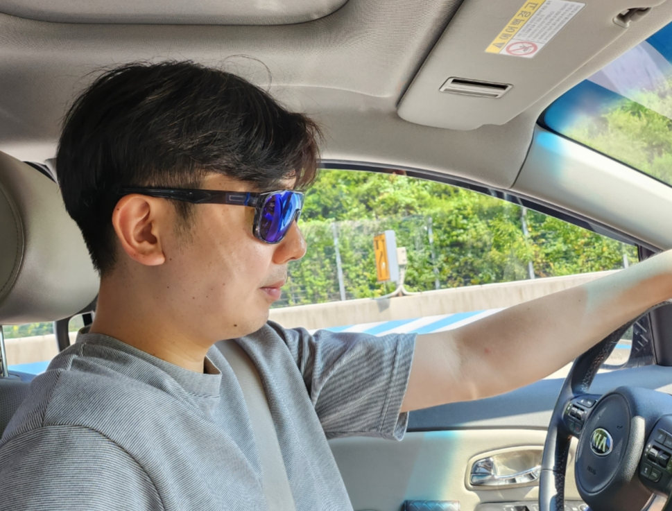 제가 착용한 컬러는 그레이테와 블루렌즈컬러인데 저렴해 보이지 않는 디자인과 기능적인 면으로 평상시에도 많이 쓰고 다닙니다. 운전할 때는 꼭 하나씩은 가지고 다니는 게 좋은데 사실 명품이나 비싼 선글라스를 차 안에 두고 있기는 아까우니 이렇게 가성비 좋은 제품 하나 딱 놔두면 부담스럽지 않고 눈이 아주 편하게 운전을 할 수 있어 좋습니다.
