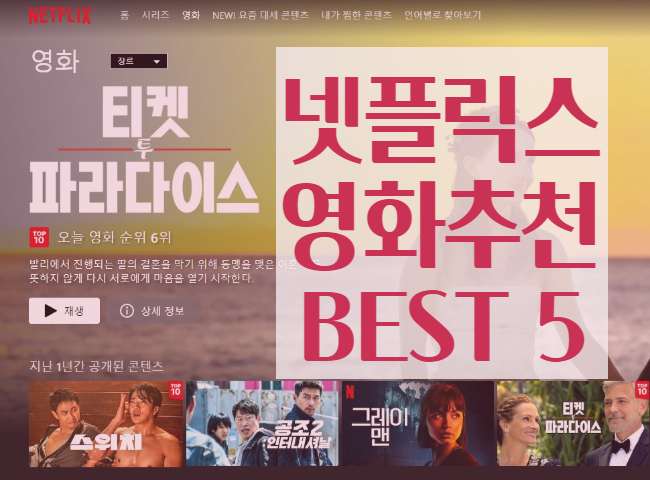 오늘 넷플릭스 최신 영화 추천 작품 best 5를 아주 개인적인 의견으로 포스팅해 보겠습니다. 순위에 상관없이 최근에 제가 재미있게 본 영화를 위주로 써볼 테니 여러분들도 넷플릭스 로그인하고 영화 고르면서 시간 보내지 마시고 믿고 한번 보시면 좋을 것 같습니다.