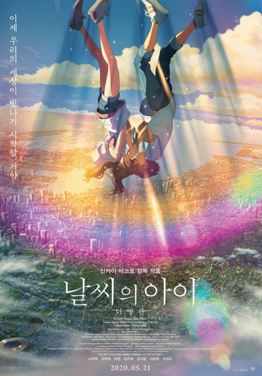 일본 애니메이션 영화 <스즈메의 문단속>이 한창 인기중에 상영이 되고 있는데 그전에 같은 감독의 애니메이션입니다. 이 감독은 날씨에 관한 재난영화를 많이 만들었는데 스즈메의 문단속도 그렇고 이 영화도 재난영화 중 하나의 스토리입니다. 기상이변으로 도쿄에 비가 그치질 않고 그 속에는 가출 소년 '호다카'와 우연히 알게 된 소녀 '히나'가 나오며 히나의 기도 덕분에 비가 멈추고 사람들은 희망을 보게 됩니다.