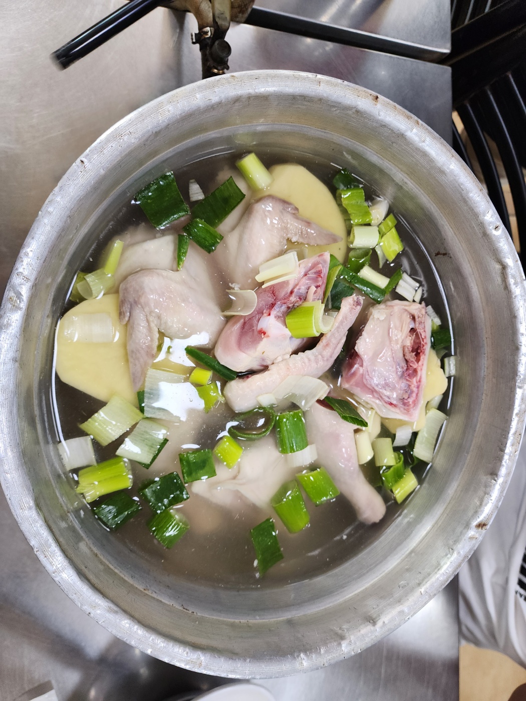 주문을 하면서 동시에 친절한 직원분이 굉장히 빠른 손놀림을 닭한마리를 잘라줍니다. 보시기에 재료가 많이 들어가진 않아 보이지만 육수 자체가 우러나면 굉장히 깊은 맛이 납니다.