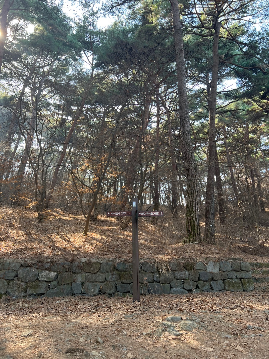 그래서 수어장대를 중간쯤 남겨두고 포기하고 다음에 제대로 등산화 신고 오기로 했습니다. 사실 저희는 1코스를 가려고 했는데 1코스는 2코스보다 더 길고 오르막이 있다고 합니다.