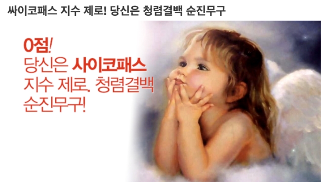 최근 일어난 충격적인 정유정 사건으로 싸이코패스 테스트가 관심이 갔습니다. 저를 포함해서 많은 분들이 이 테스트를 궁금해하기도 했고 요즘 많이 SNS에서 유행이 또 시작되었는데 아래의 테스트 바로가기를 링크해 두었으니 한번 해보시길 바랍니다. 저는 0점으로 순진무구한 사람이라고 하니 다행입니다.