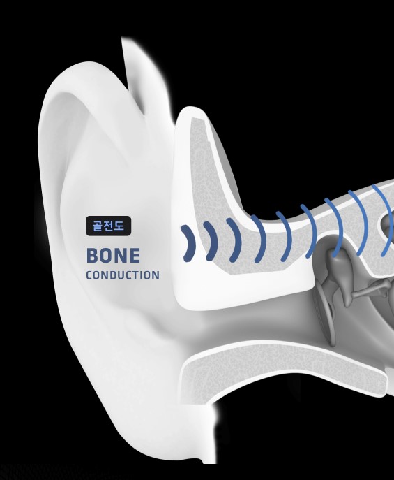 골전도란 진동이 고막을 거치지 않고 광대뼈를 통해서 당팽이관으로 직접 소리를 전달하는 것을 말하며 이어폰 처럼 귀를 막지 않아도 들리는 것을 말합니다.