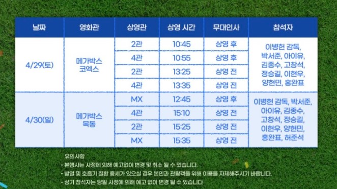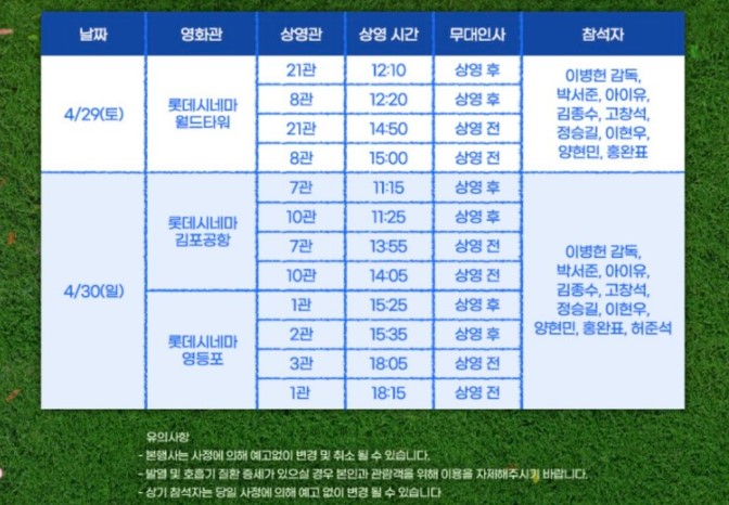 극장별로 일정은 아래 사진을 참고하시면 되겠습니다.