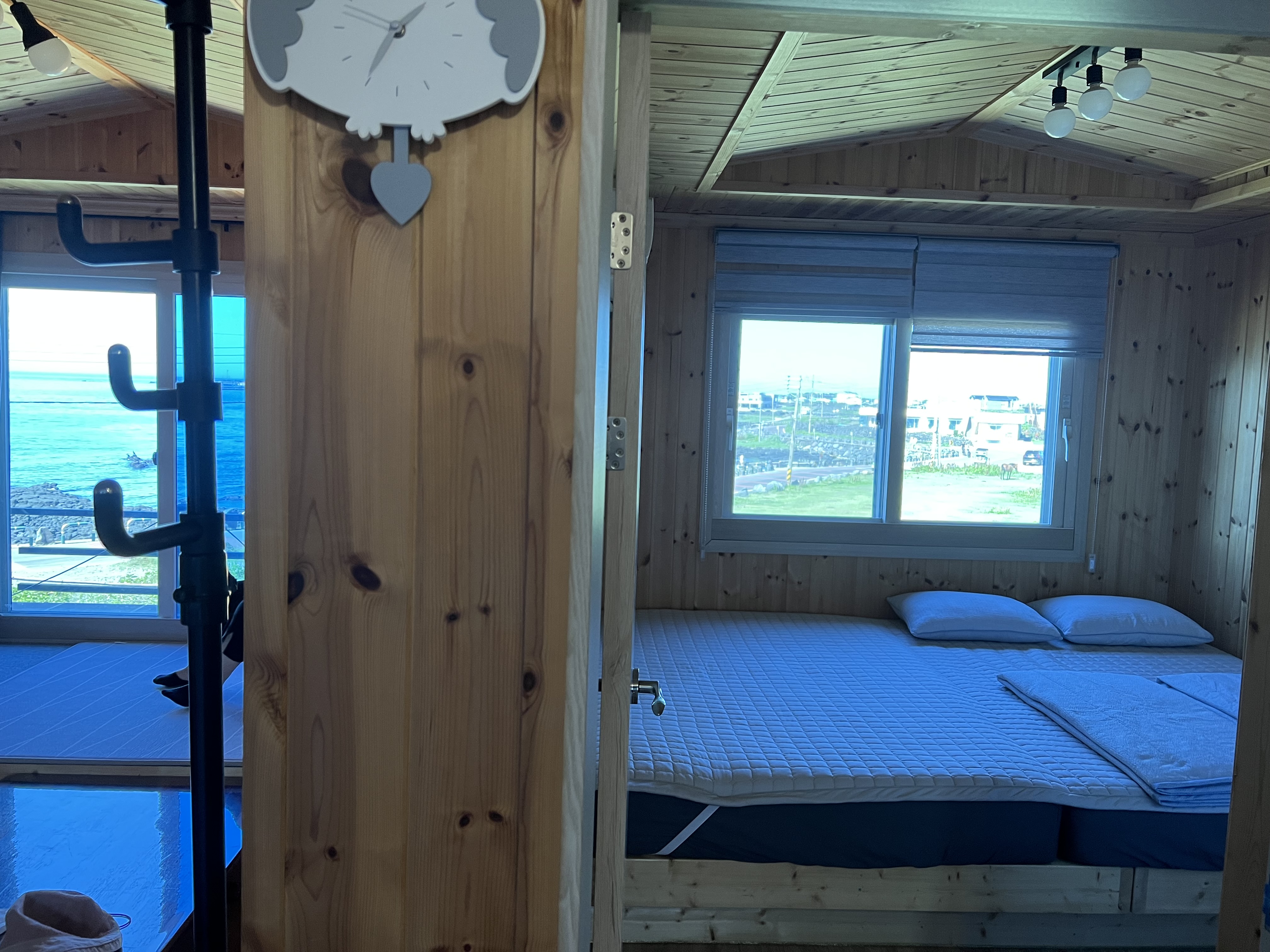 방은 한 개로 침대가 있고 거실에도 침대가 있어서 가족단위로도 아주 좋고 커플이 쓰기에도 아주 좋습니다. 다른 곳처럼 펜션 자체도 그렇게 크지 않기 때문에 그냥 일대 주변이 굉장히 조용합니다.