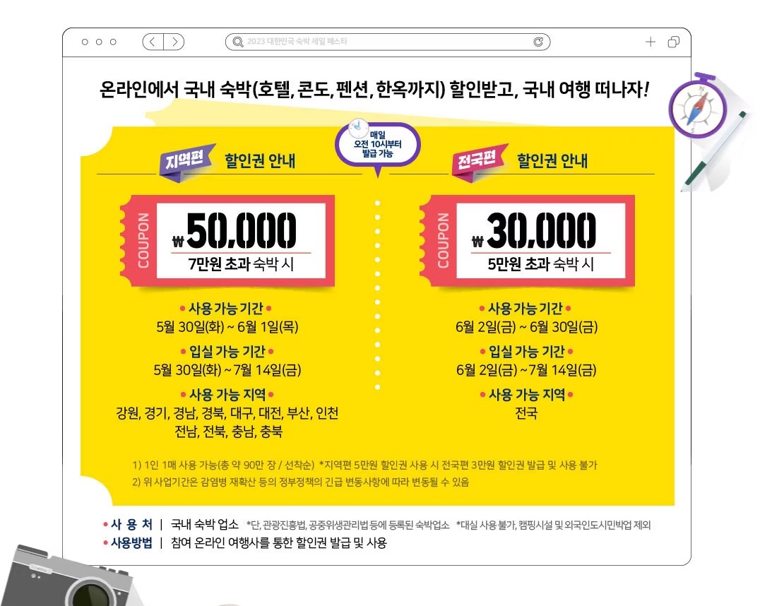국내 숙박 최대 5만원 할인 역대급 숙박혜택을 확인하세요!